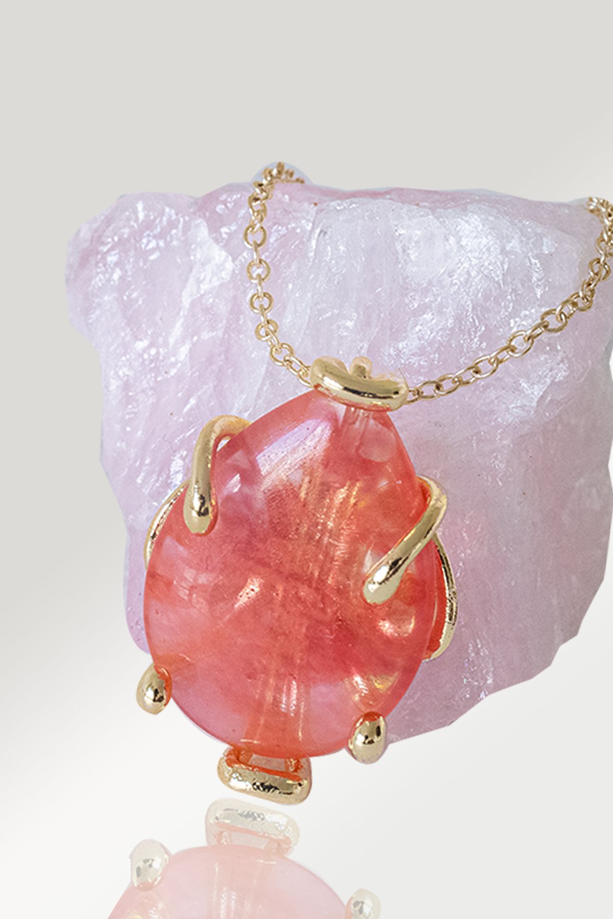 Sertifikalı AAA+ Damla Tırnaklı Gül Kuvars Taşı Kolye - Altın Renkli
