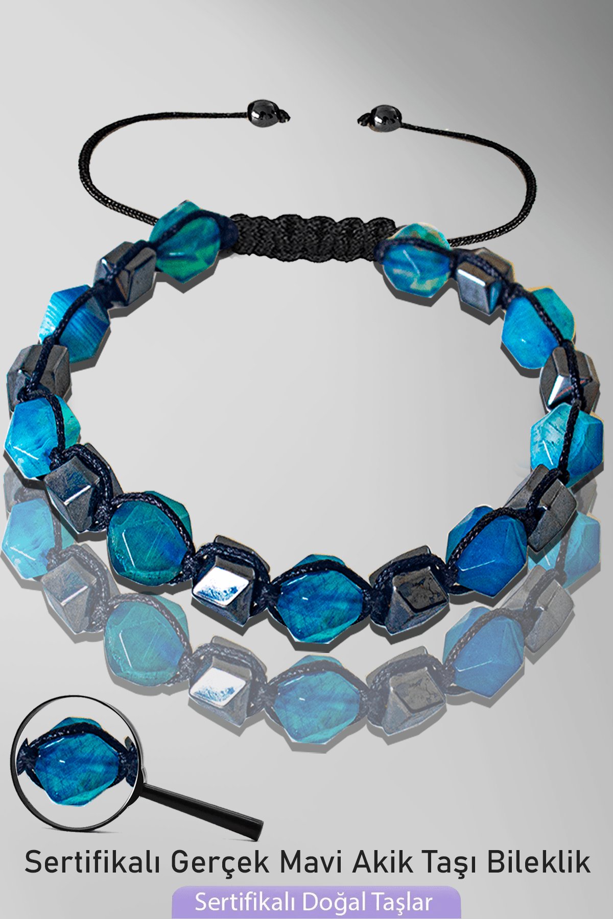 (Mavi Akik Doğal Taş Bileklik - %100 Doğal ve Sertifikalı)