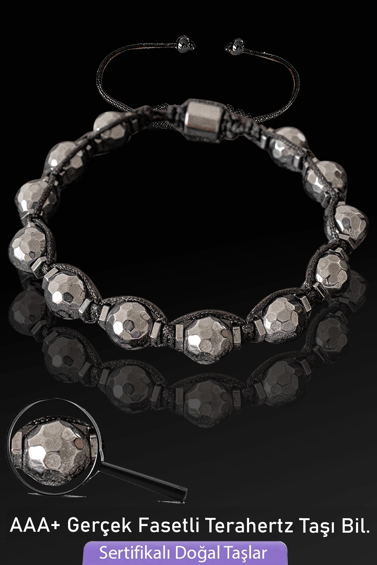 Sertifikalı AAA+ Fasetli Gerçek Terahertz Taşı Bileklik - Ayarlamalı