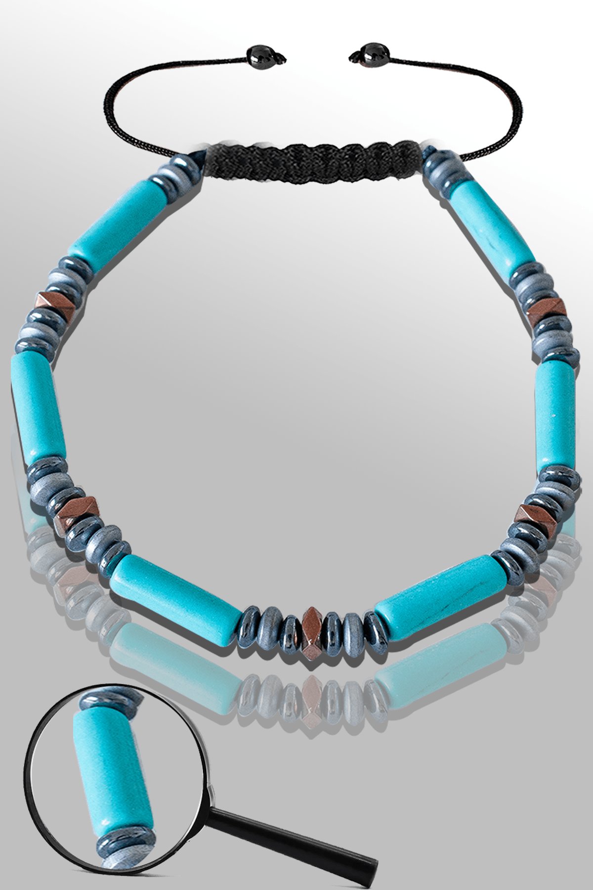 Sertifikalı AAA+ Hematitli Dikdörtgen Model Firuze Taşı Bileklik - Turkuaz Taşı