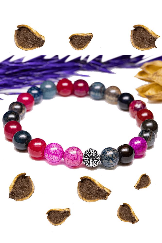 Sertifikalı Aaa+ Kalite Damarlı Renkli Akik Taşı Bileklik - Gümüş Aparatlı