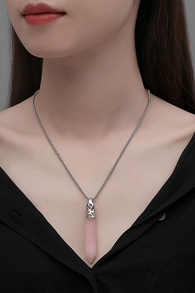Sertifikalı Aaa Kalite Doğal Açık Pembe Kuvars Taşı Kolye