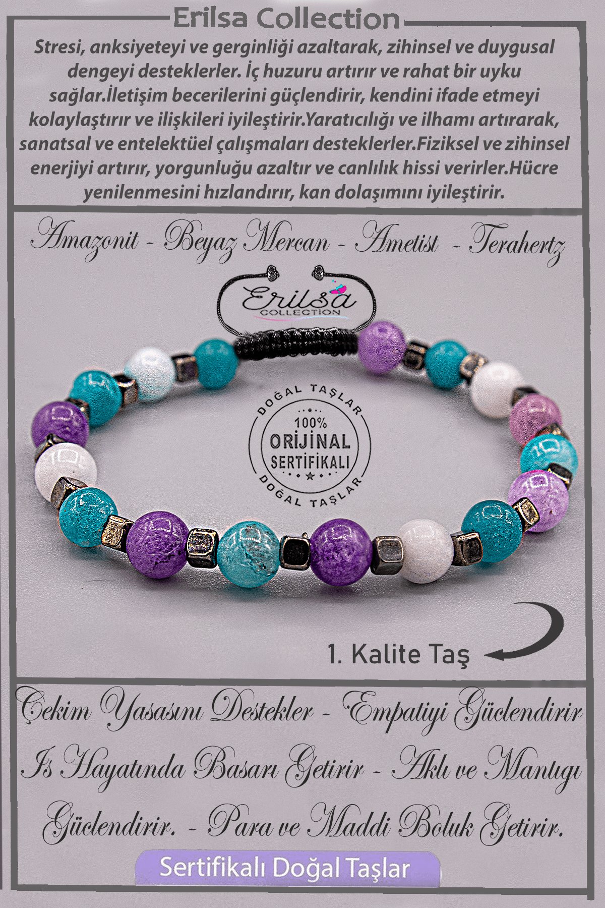 (Doğal Terahertz - Akuamarin - Ametist - Mercan Taşı  - %100 Doğal ve Sertifikalı)