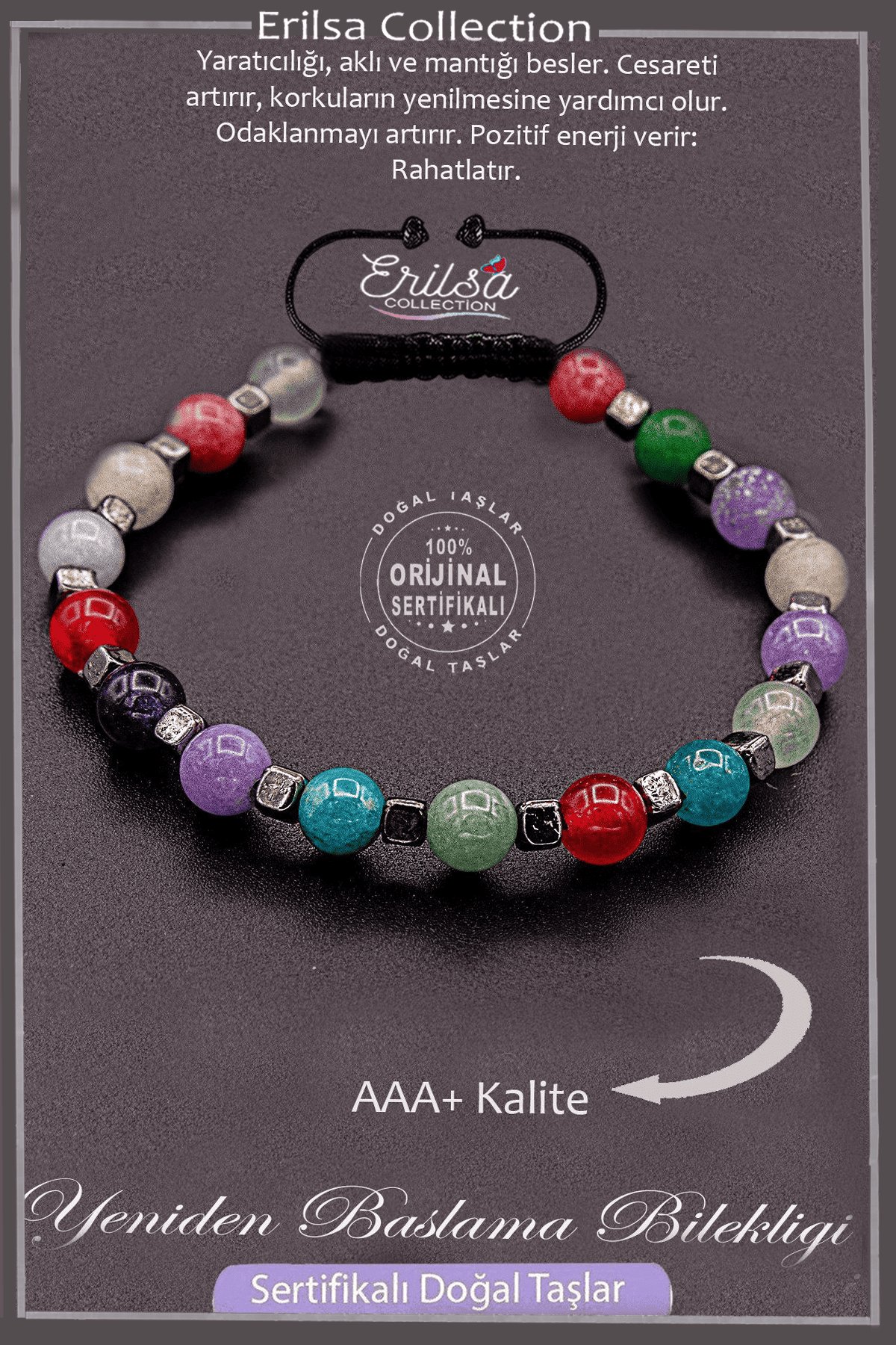 (Doğal Terahertz -  Doğal Kuvars - Akik - Ametist - Apatit - Yeşim Taşlarından Oluşan Yeniden Başlama Bilekliği - %100 Doğal ve Sertifikalı)