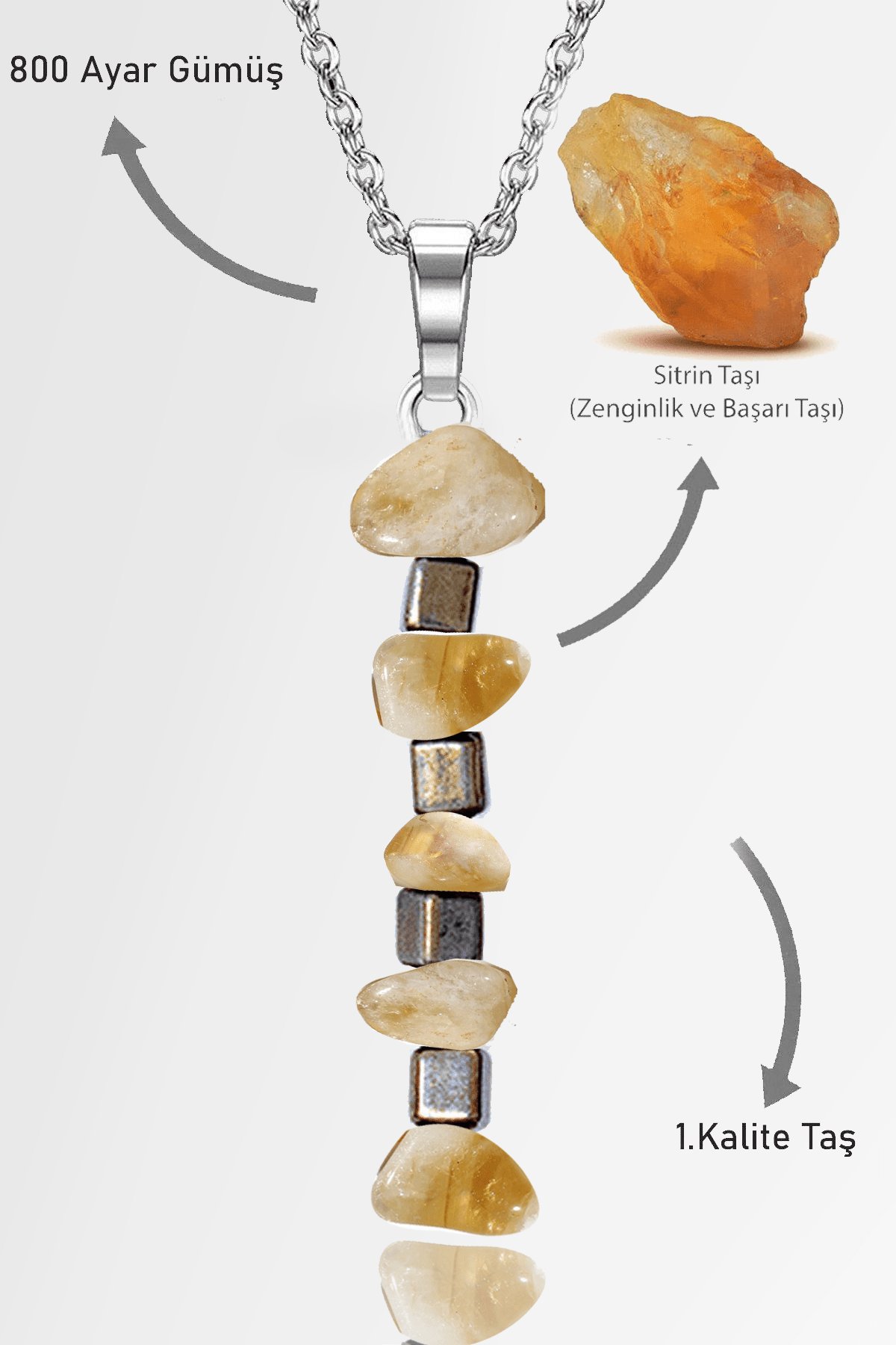 Sertifikalı AAA+ Kırık Taşlı Model Sitrin Taşı Kolye - Brezilya