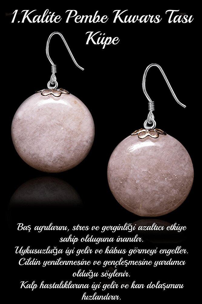Pembe kuvarsr doğal taş küpe, modellerimizin taşlarının kalitelisi inanılmazdır. Pozitif enerjiler verir ve negatif enerjilerinizi yok edecektir. Doğal taşların hiç biri birbirinin aynısı olmadığı için küçükte olsa farklılıklar gösterebilir. Ürünlerimiz sizlere orijinallik sertifikası ve garanti belgesi ile gönderilmektedir. ''Tesbih Atölyesi'' koruyucu kadife kesesinde gönderilecektir.