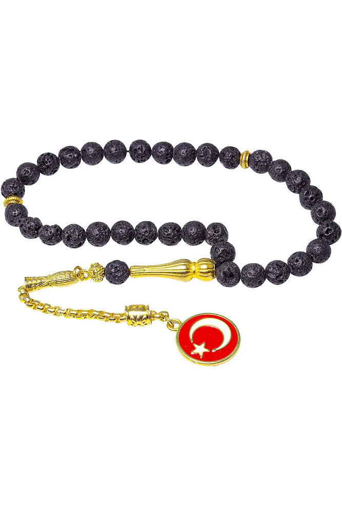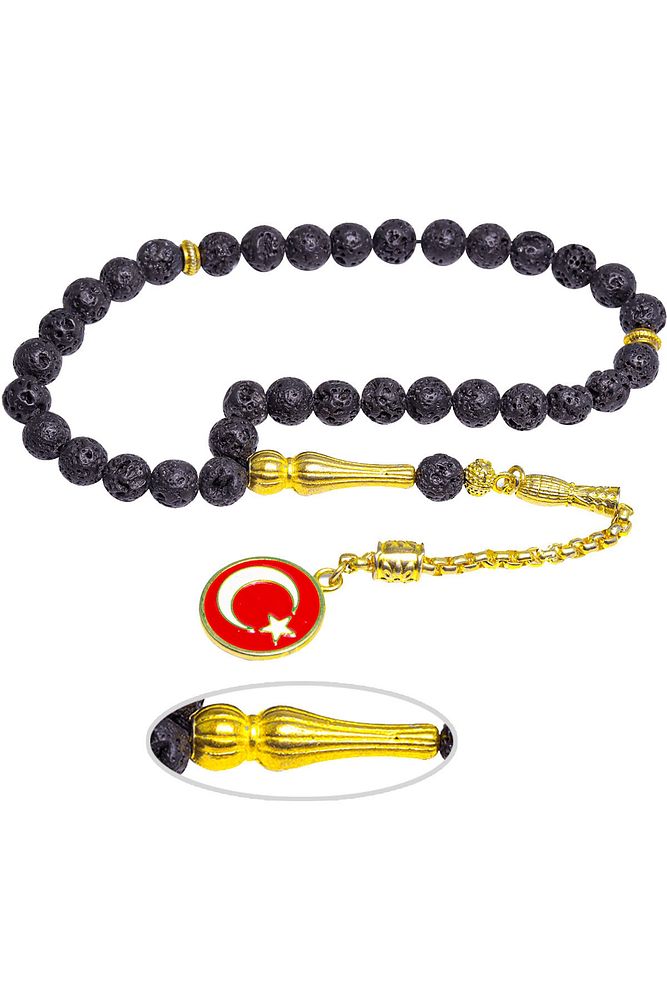 Sertifikalı Altın Kaplama Kararmaz Püskül Yanardağ Tüfü Doğal Lav Taşı Tesbih