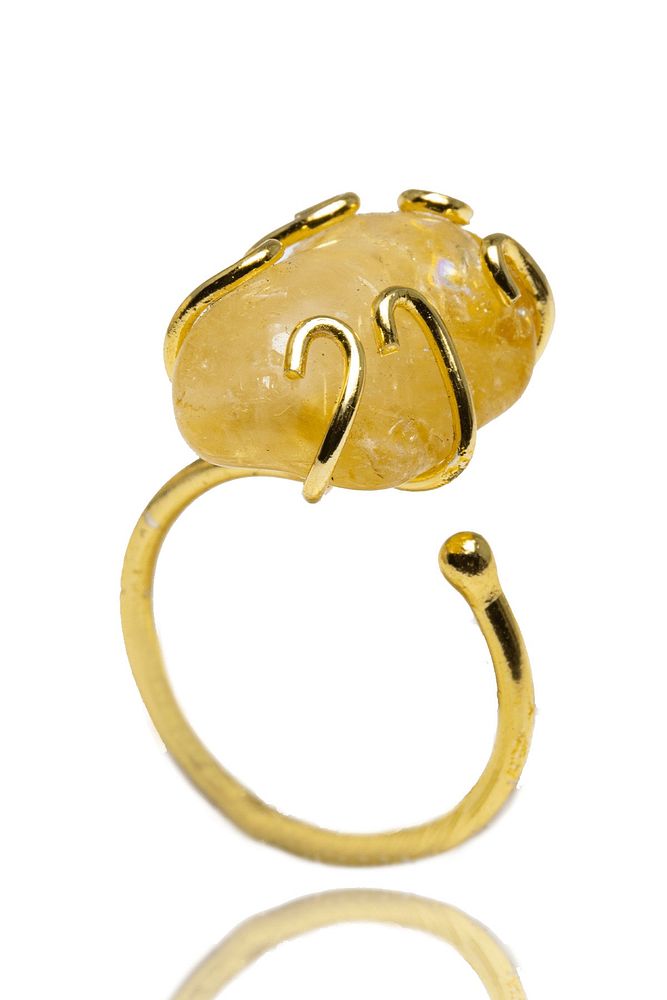 Sertifikalı Altın Renk Rokoko Model Sitrin Taşı Yüzük - Ayarlamalı