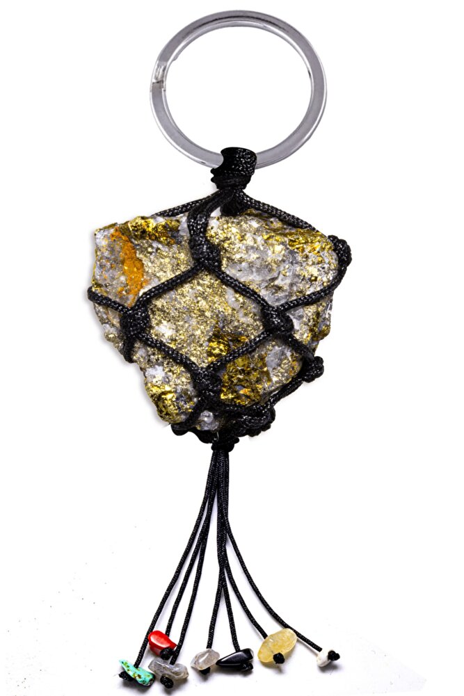 Sertifikalı Altınlı Pirit Taşı 7 Çakra Doğal Taş Anahtarlık