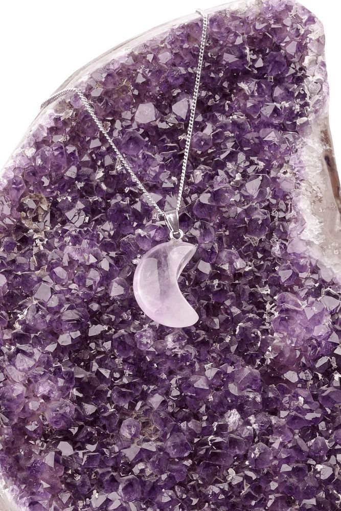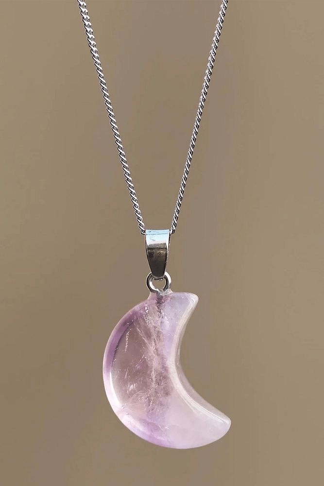 Sertifikalı Ametist Doğal Taş Ay Model Kolye