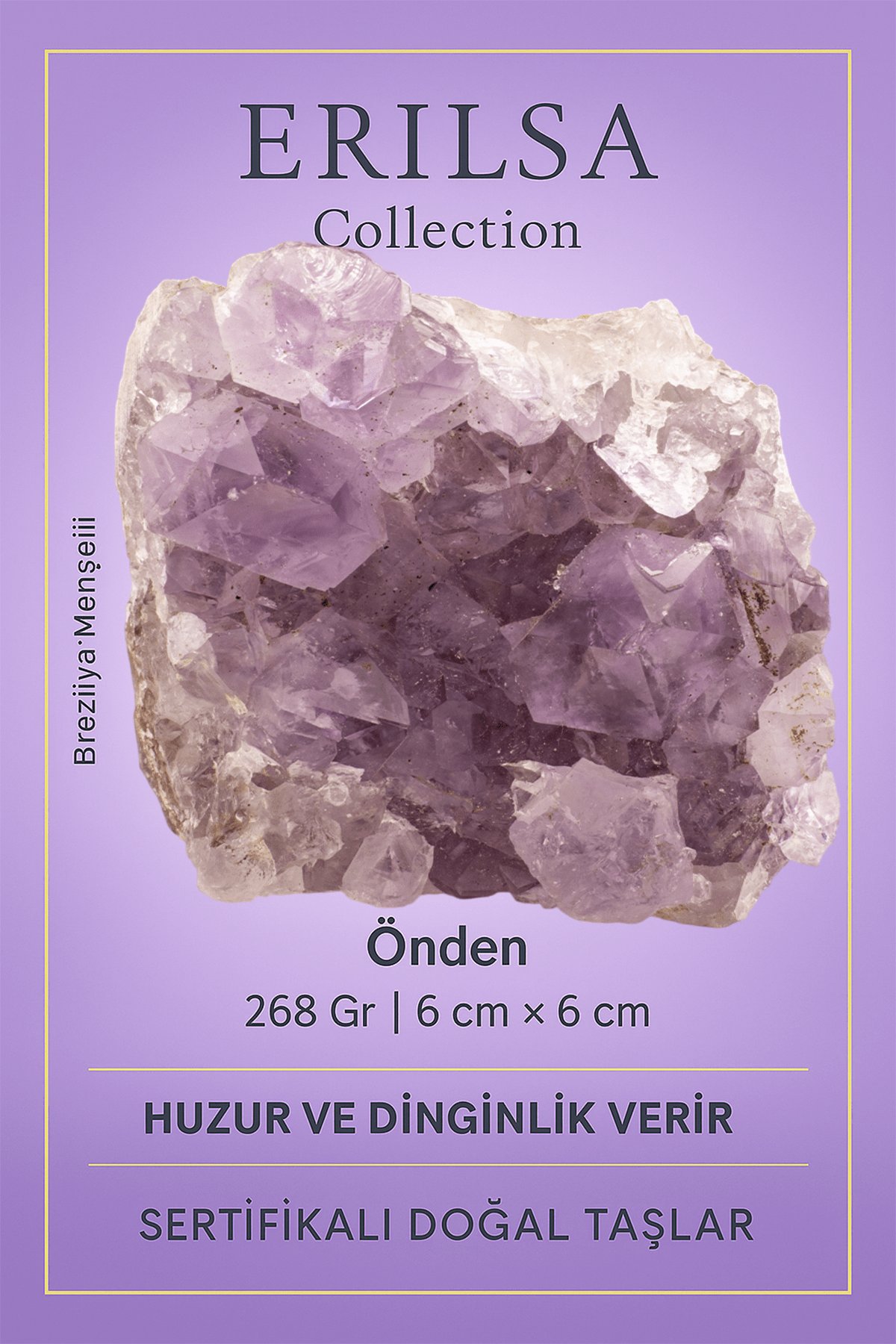 Ametist taşı, Balık, Kova ve Yay burçlarıyla yüksek uyum içindedir. Masa üstü, kişisel meditasyon alanı ya da özel koleksiyonlar için değerli bir parçadır. Her taş benzersiz kristal yapıya sahip olup, görseldeki taş birebir sunulmaktadır.