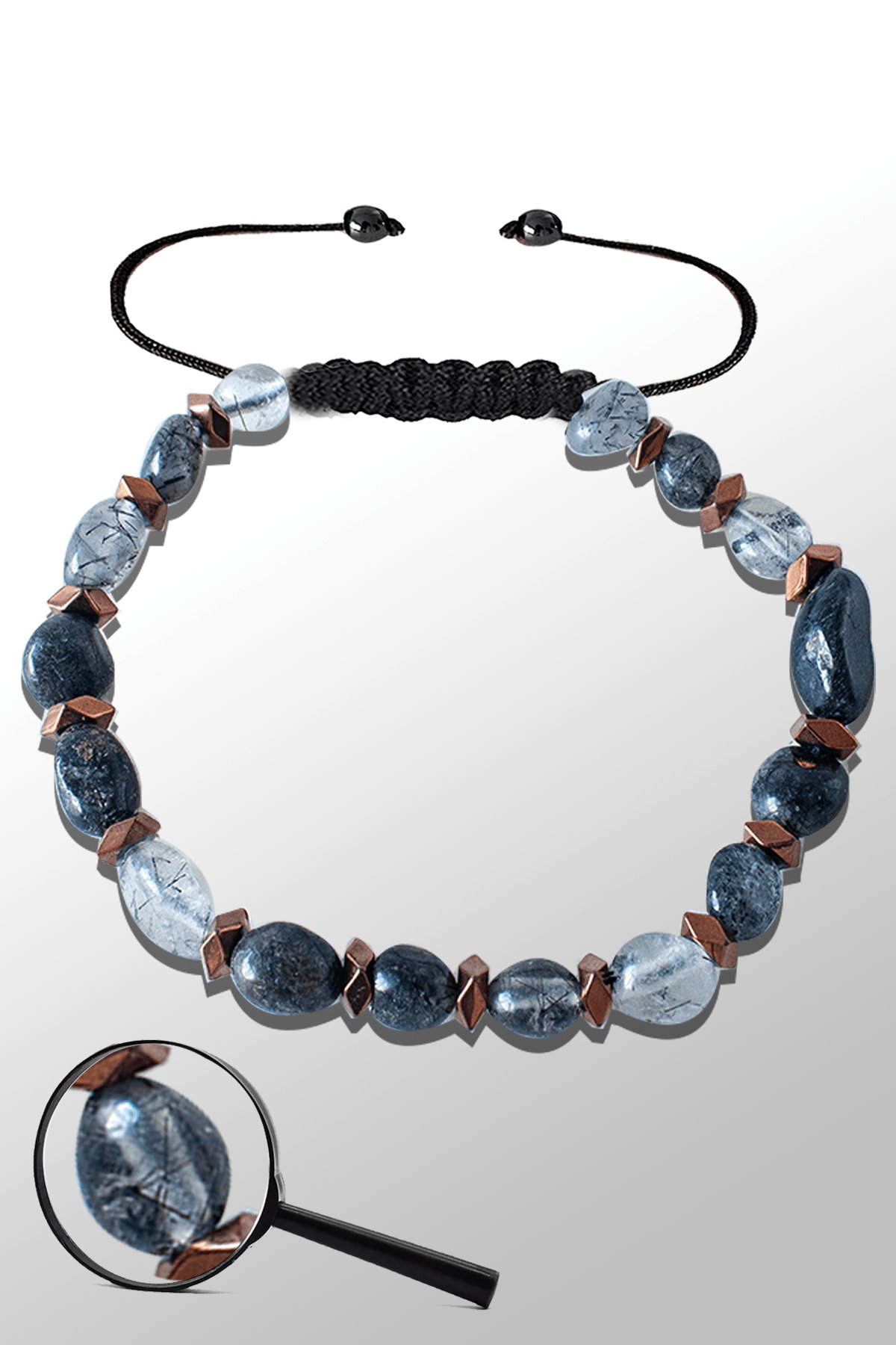 Sertifikalı Amorf Model Gerçek Siyah Rutil Kuvars Taşı Bileklik - Ayarlamalı