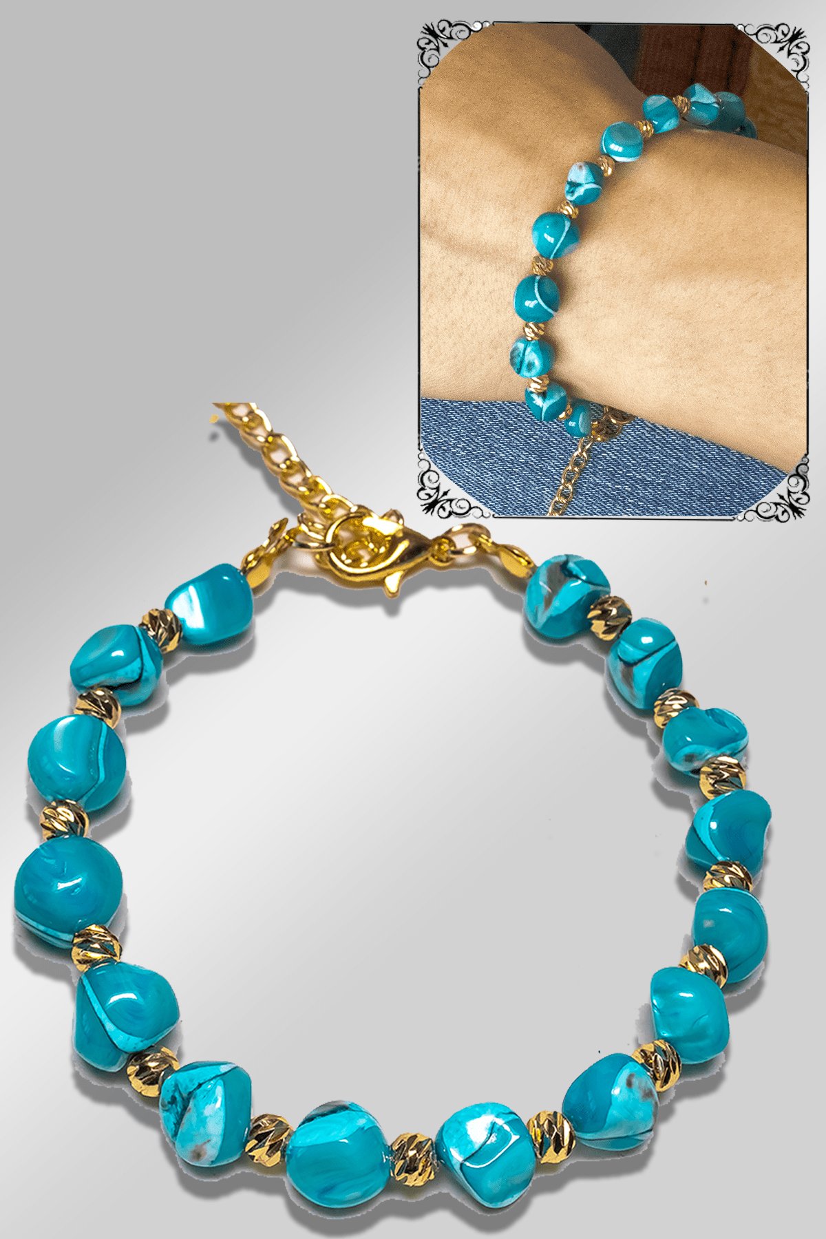 Sertifikalı Amorf Model Mavi Renkli Sedef Taşı Bileklik (Ayarlamalı)