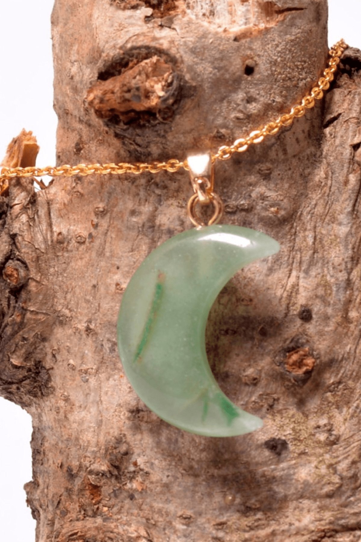 Sertifikalı Ay Model Aventurin Taşı Kolye - Altın Kaplama
