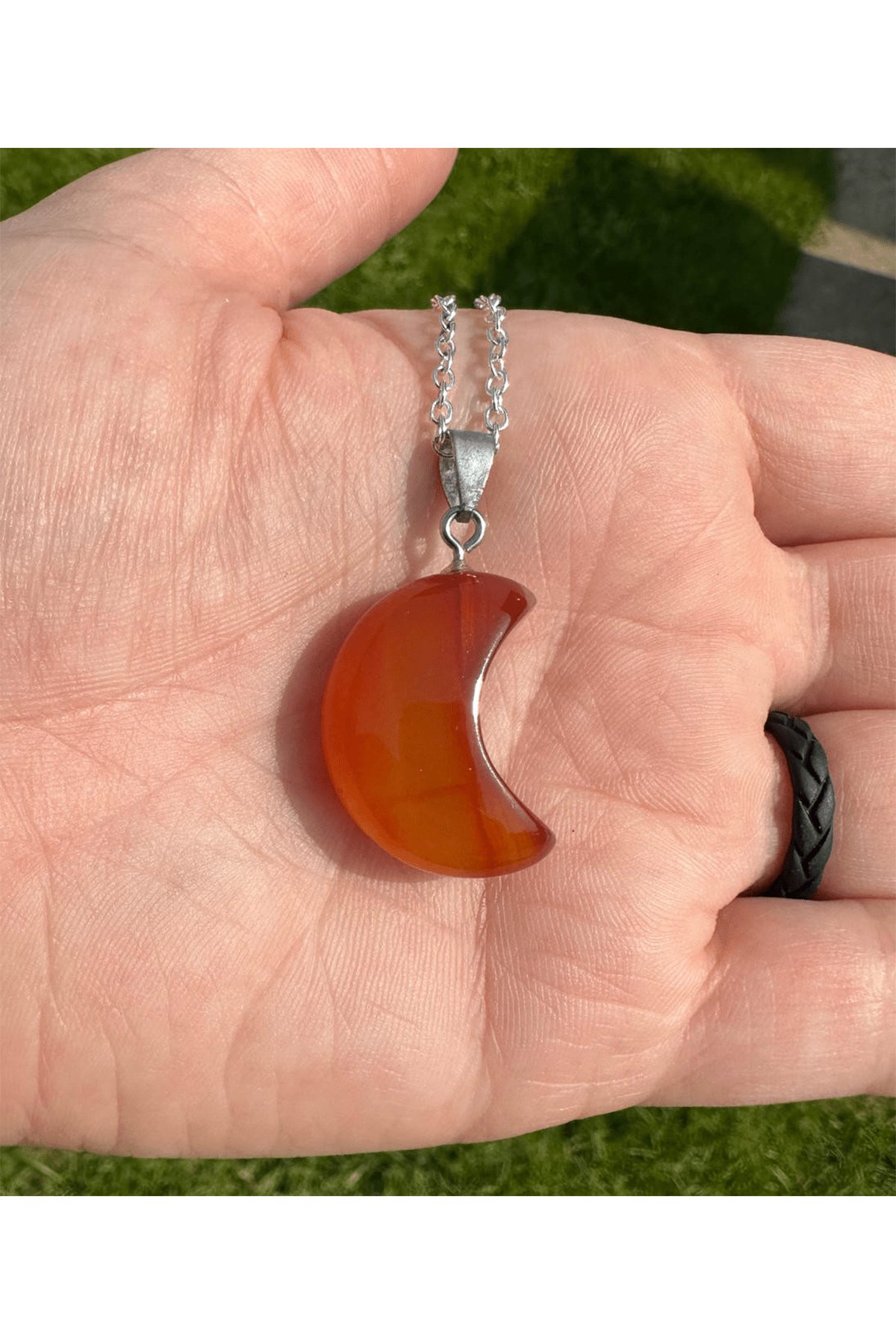 Sertifikalı Ay Model Gerçek Karnelyan Akik Taşı Kolye