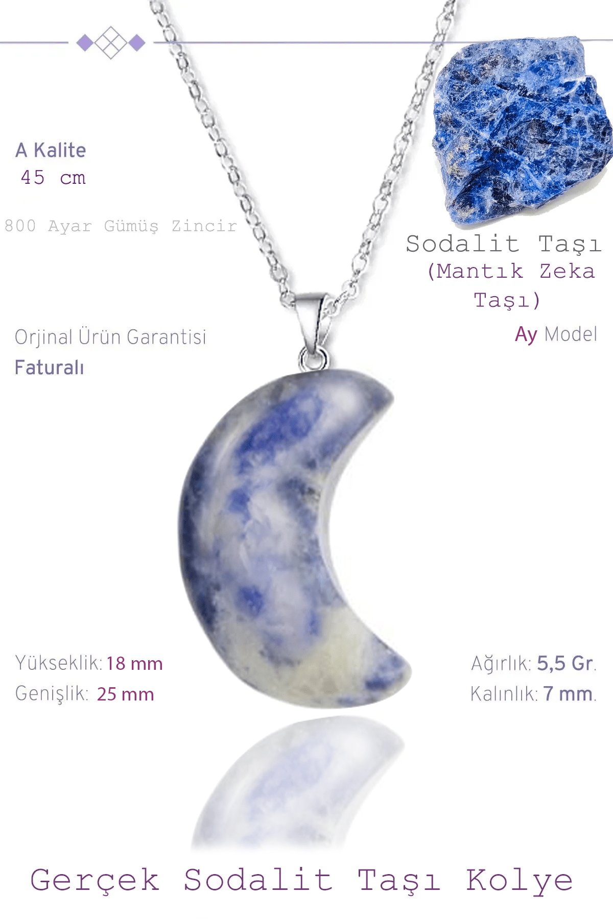 Sertifikalı Ay Model Gerçek Sodalit Taşı Kolye