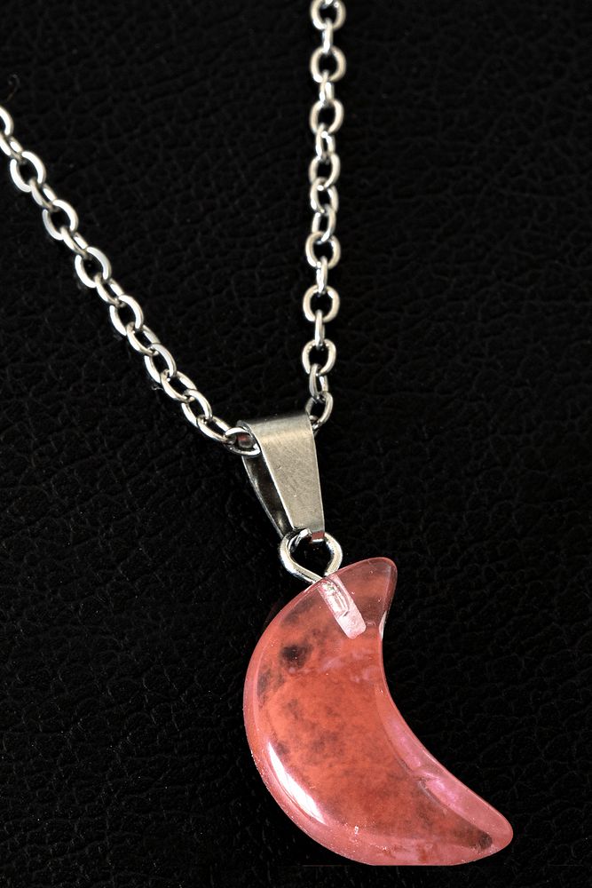 Sertifikalı Ay Model Rose - Gül Kuvars Taşı Kolye