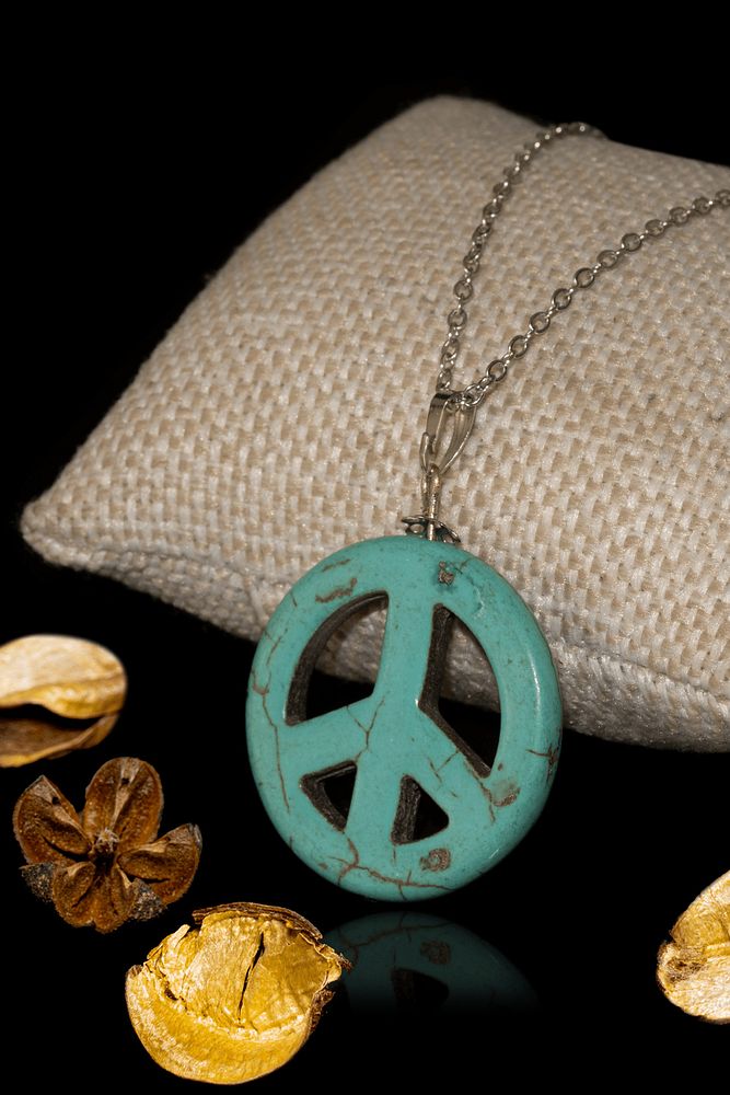 Sertifikalı Barış Sembolü 1.kalite Turkuaz Taşı Kolye