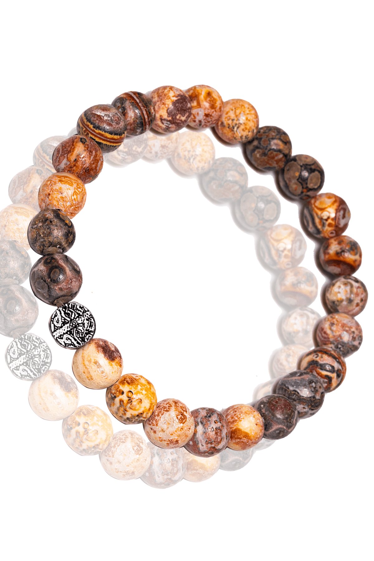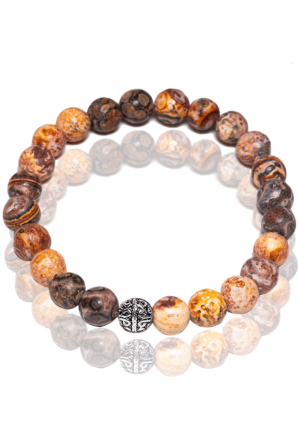 Sertifikalı Beyaz - Kırmızı Harita Akik Taşı Bileklik - Gümüş Aparatlı
