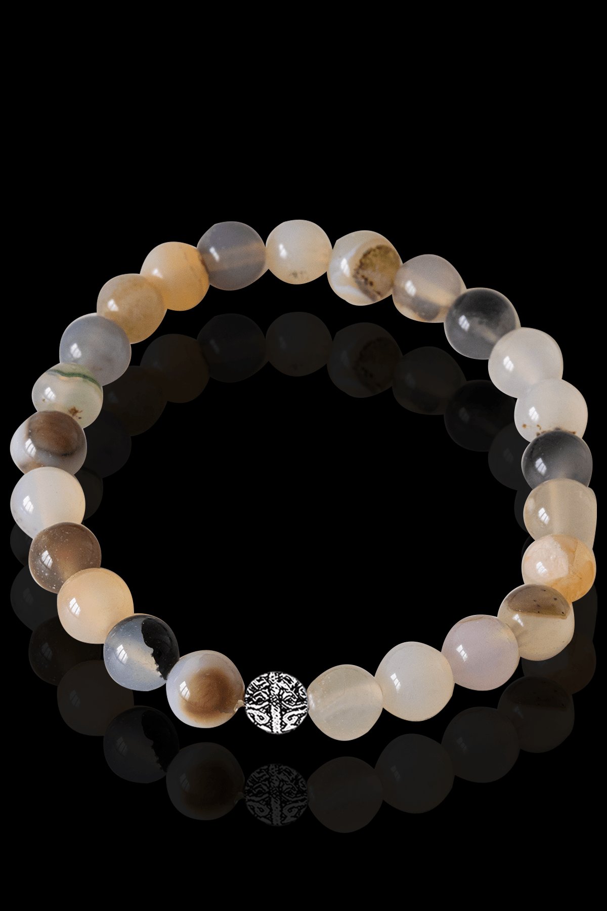 Sertifikalı Beyaz Akik Taşı Bileklik - Gümüş Aparatlı