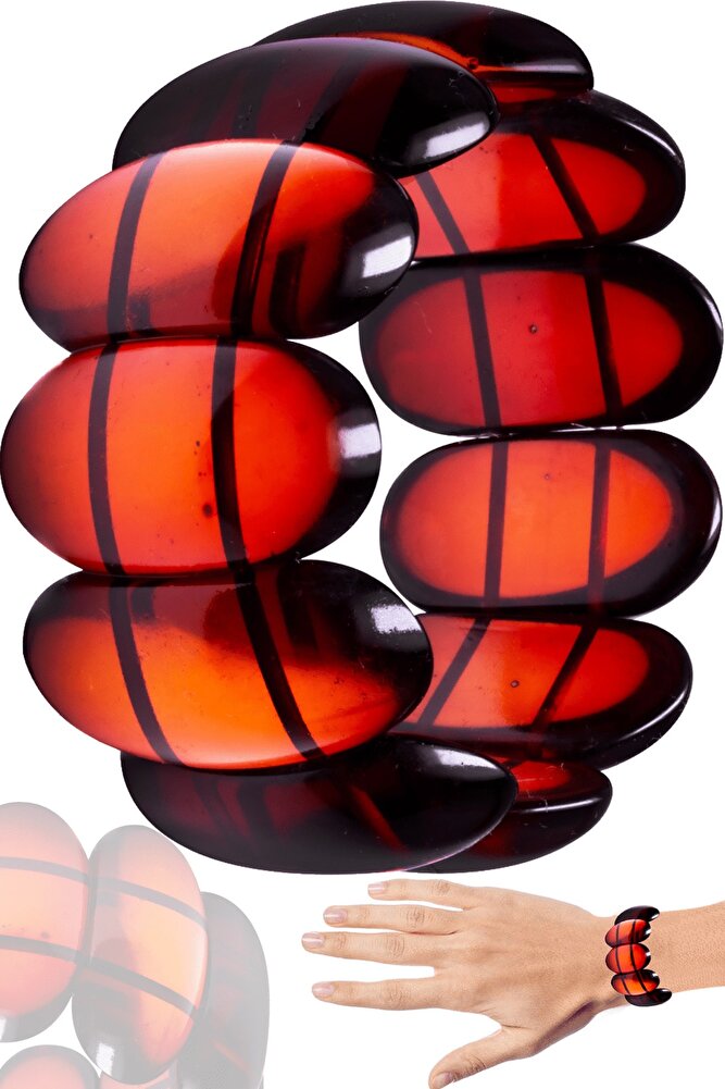Sertifikalı Bordo Oval Unisex Rolex Beyrut Fosilli Damla Kehribar Bileklik
