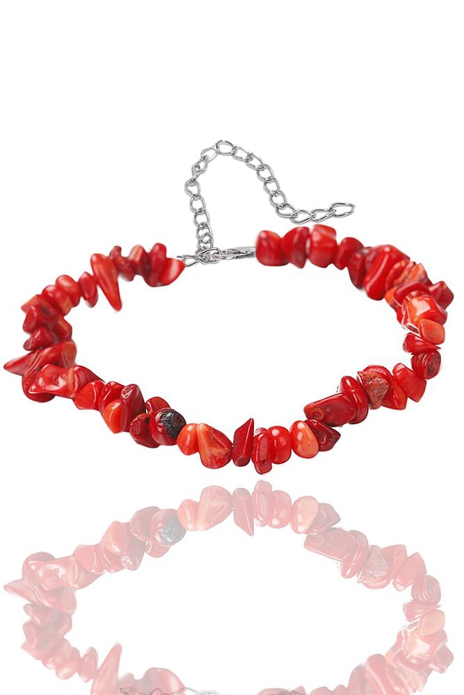 Sertifikalı Boyasız Kırmızı Mercan Kırık Doğal Taşlı Bileklik - 1.kalite