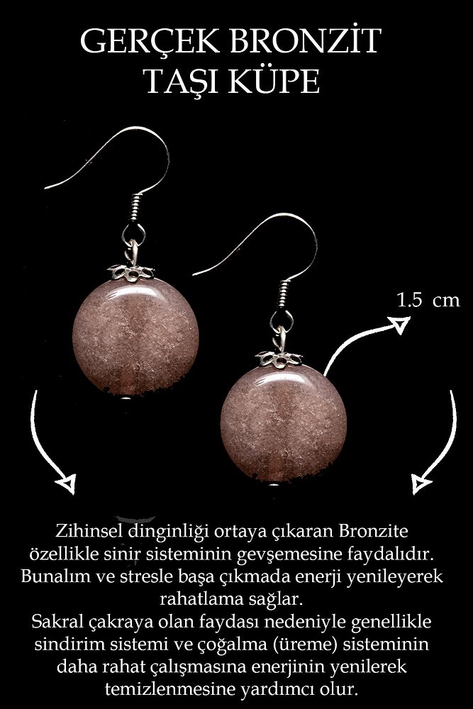 Bronzit doğal taş küpe, modellerimizin taşlarının kalitelisi inanılmazdır. Pozitif enerjiler verir ve negatif enerjilerinizi yok edecektir. Doğal taşların hiç biri birbirinin aynısı olmadığı için küçükte olsa farklılıklar gösterebilir. Ürünlerimiz sizlere orijinallik sertifikası ve garanti belgesi ile gönderilmektedir. ''Tesbih Atölyesi'' koruyucu kadife kesesinde gönderilecektir.