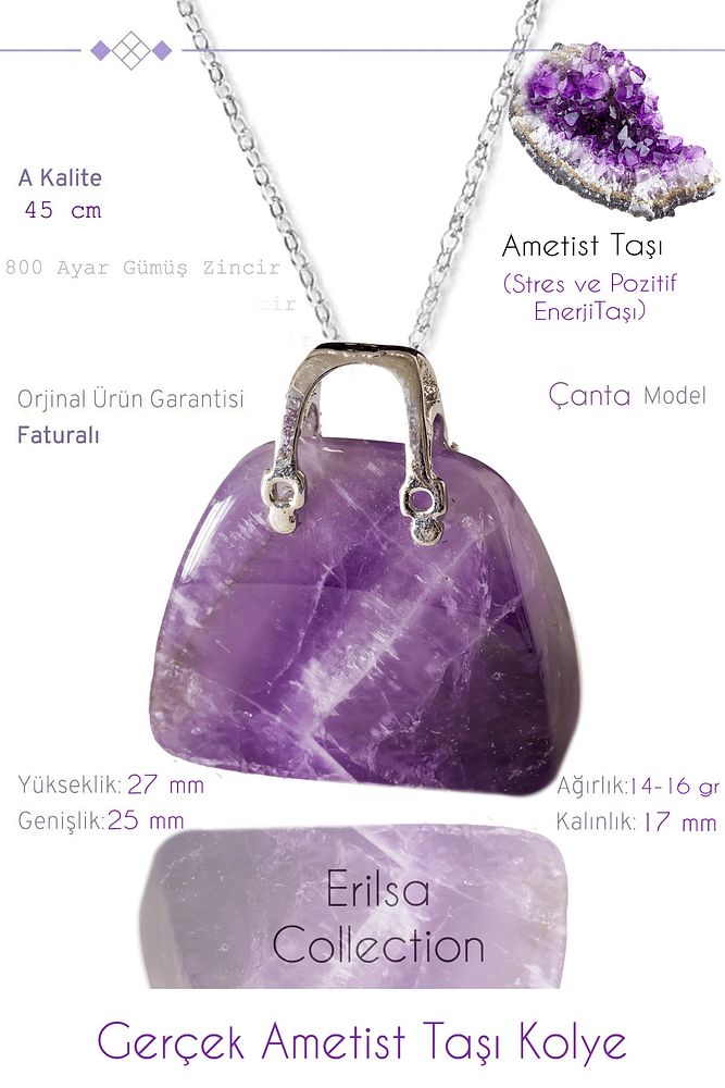 Sertifikalı Çanta Model Ametist Taşı Kolye