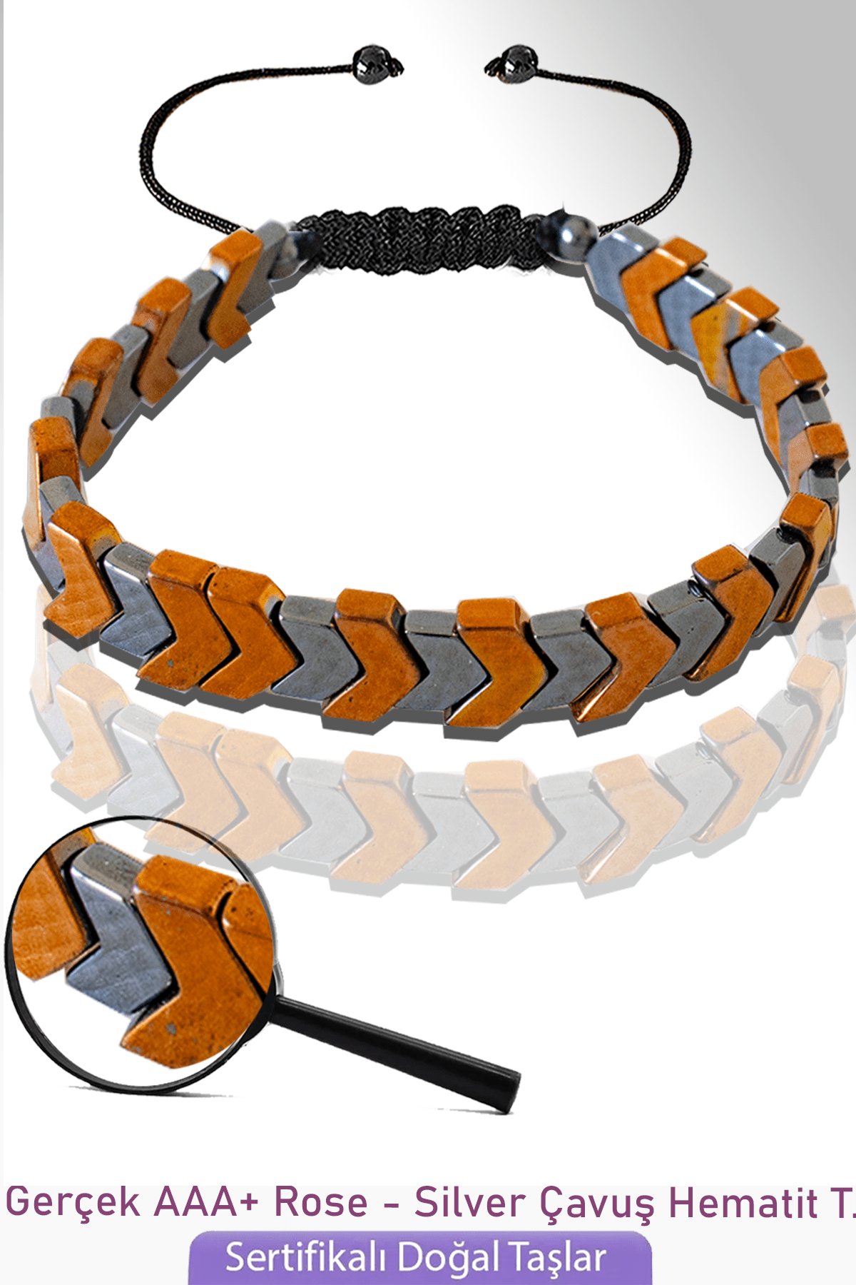 Sertifikalı Çavuş Model Rose - Silver Hematit Taşı Bileklik - Ayarlamalı