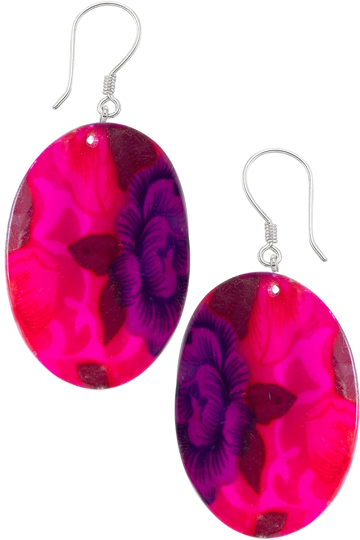 Sertifikalı Çiçek İşlemeli Pembe-Mor Renkli Sedef Taşı Küpe