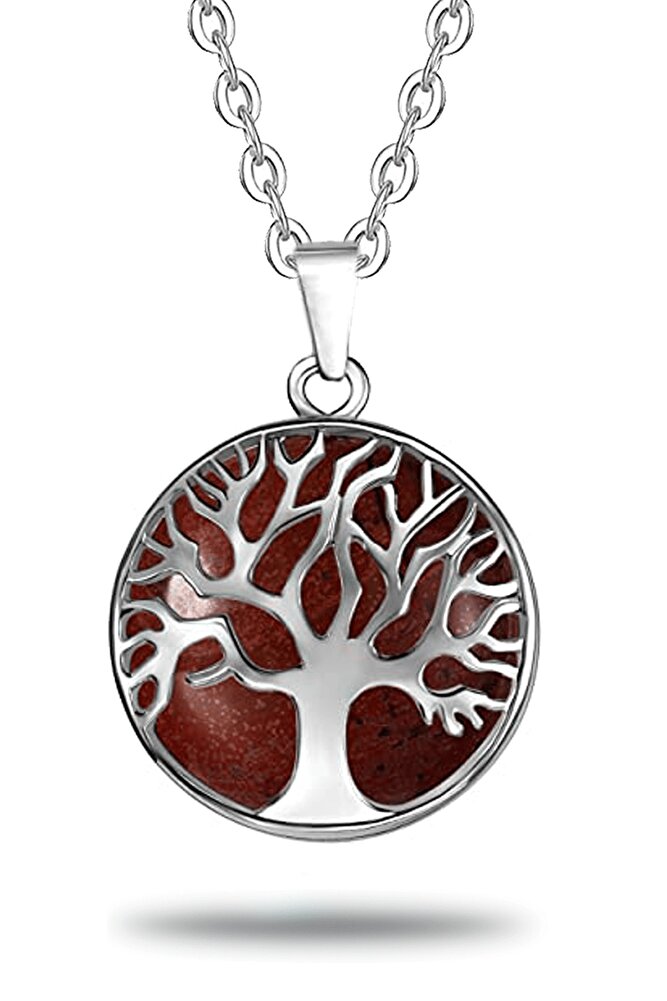 Sertifikalı Çift Taraflı Doğal Taş Mercan Taşı Hayat Ağacı Kolye