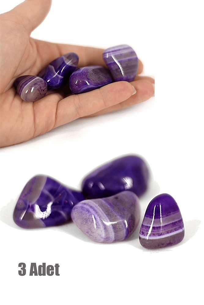 Sertifikalı Cilalı Doğal Mor Akik Taşı Kütle - 3 Adet
