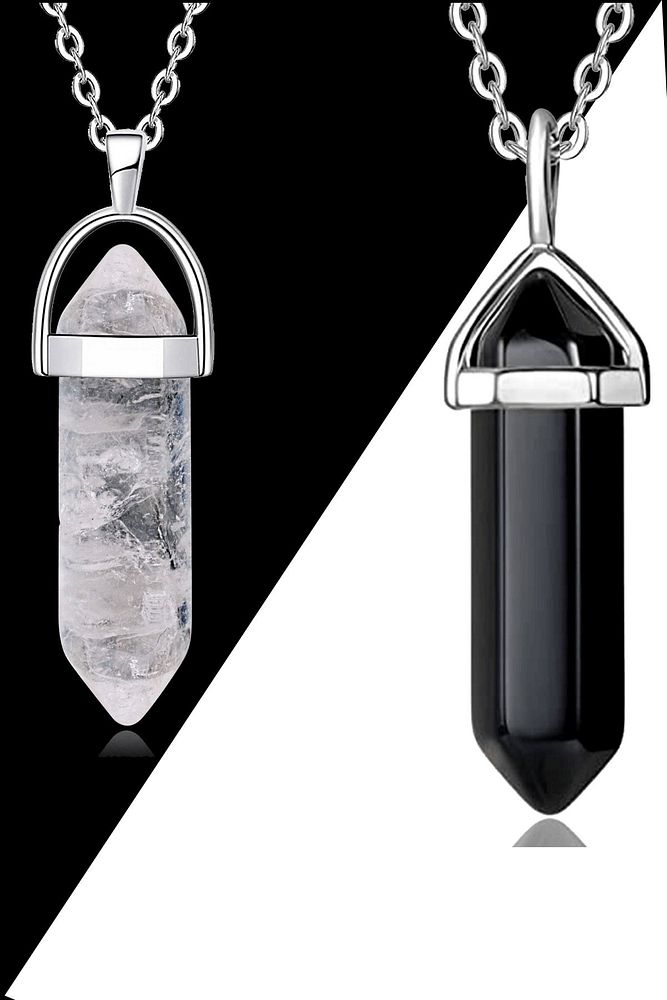 Sertifikalı Çivi Model Kristal Kuvars-obsidyen Doğal Taş Çift Sevgili Kolyeleri