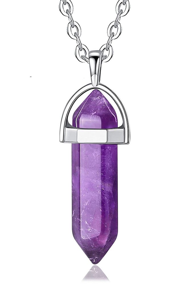 Sertifikalı Çivi Model Yüksek Kalite Mor Ametist Taşı Kolye
