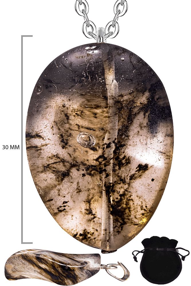 Sertifikalı Çizgili Doğal Fosilli Akik Taşı Kolye