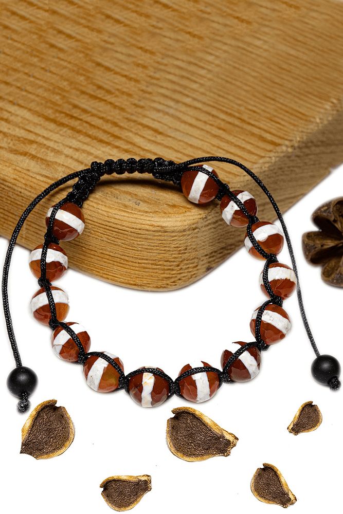 Sertifikalı Çizgili Kırmızı Tibet Akik Taşı Bileklik
