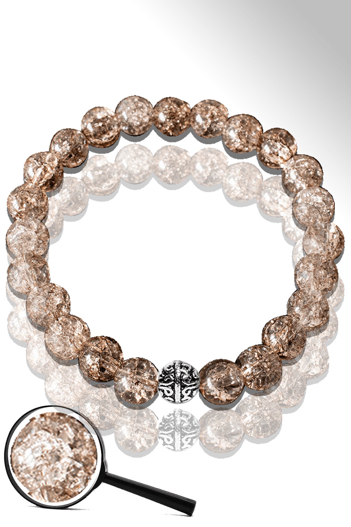 Sertifikalı Dağ Kristalı Kahverengi Necef Taşı Bileklik - Gümüş Aparatlı