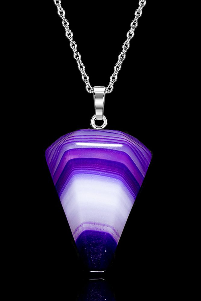 Sertifikalı Damarlı Mor Akik Taşı Pandül Kolye