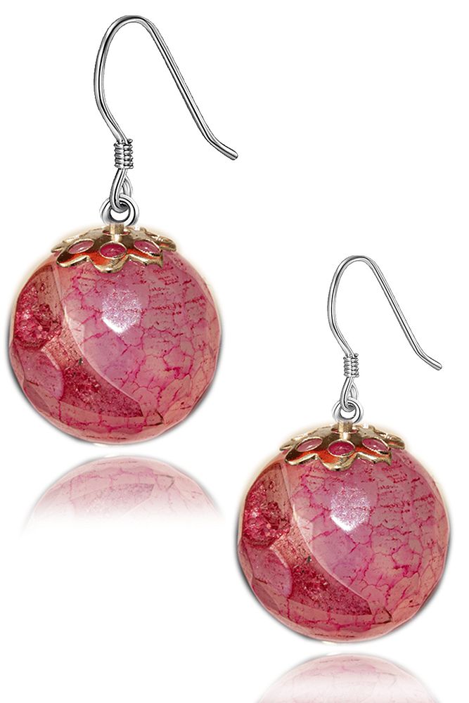 Sertifikalı Damarlı Pembe Akik Taşı Doğal Taş Küpe