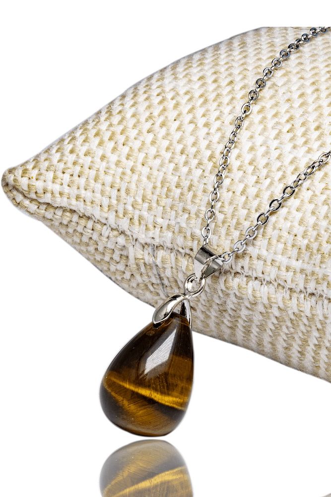 Sertifikalı Damla Drop Kaplan Gözü Taşı Kolye - Gümüş Aparatlı