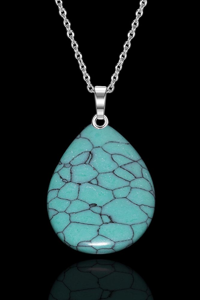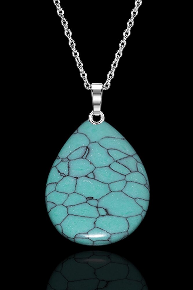 Sertifikalı Damla Kesim Turkuaz Taşı Kolye - 1.kalite