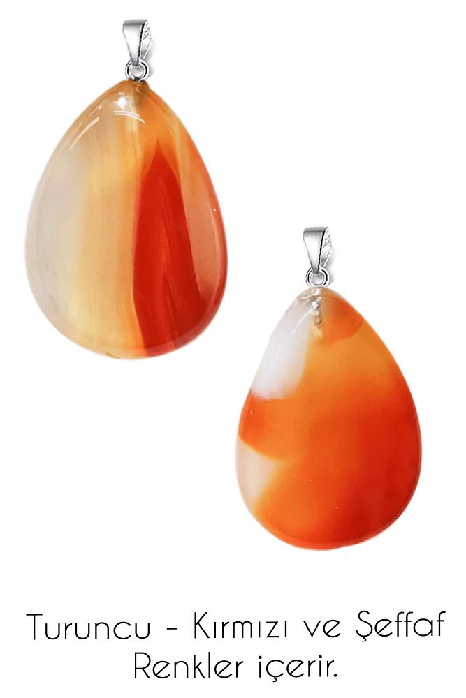 Sertifikalı Damla Model Gerçek Karnelyan Akik Taşı Kolye