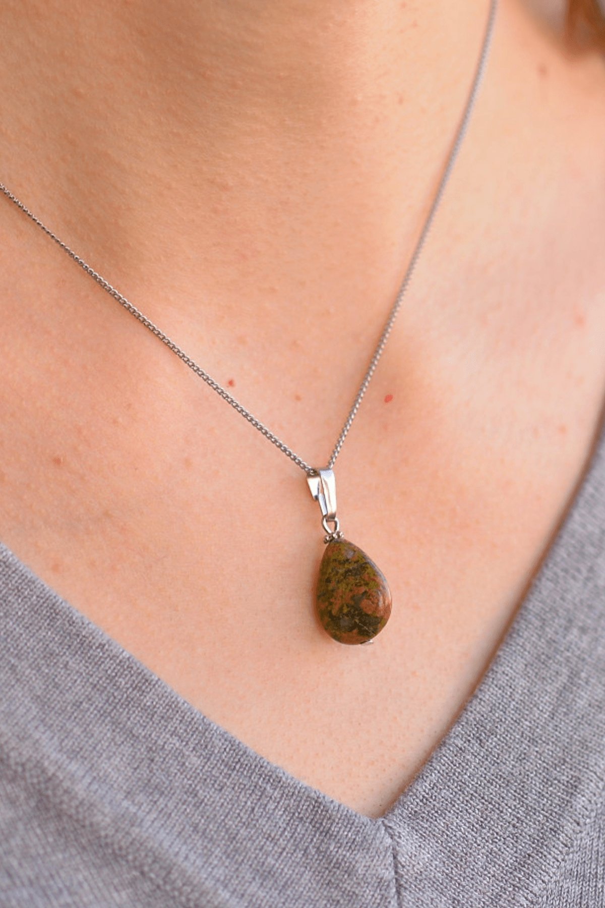 Sertifikalı Damla Model Gerçek Unakit Taşı Kolye