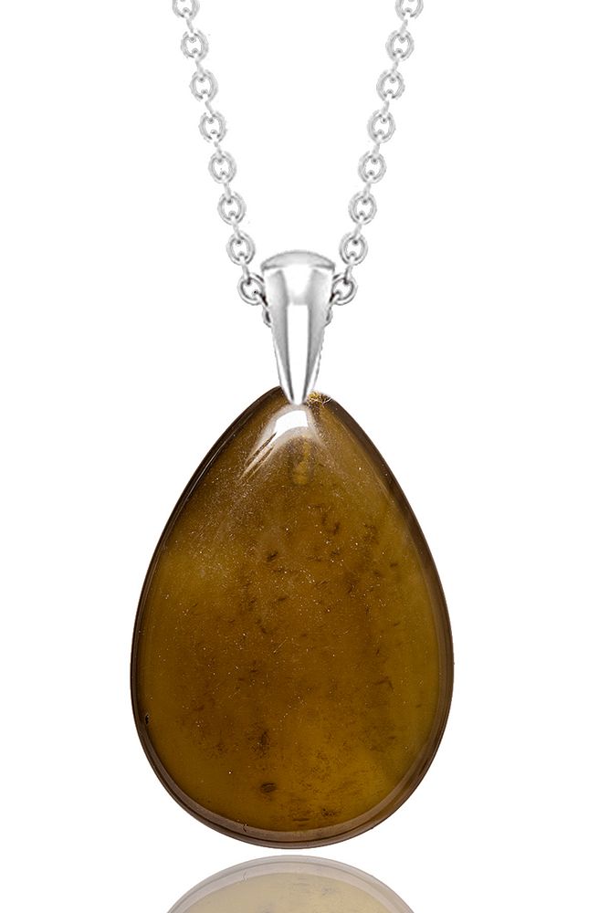 Sertifikalı Damla Model Kahverengi Akik Taşı Kolye (GÜMÜŞ APARATLI)