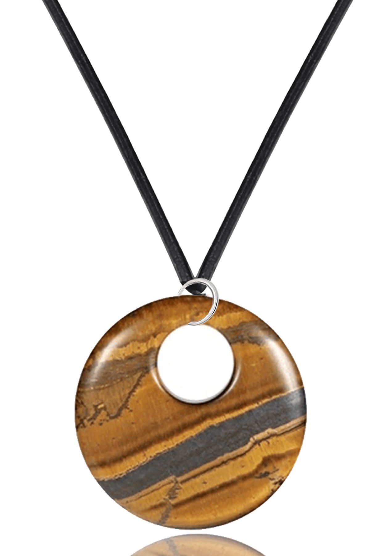 Sertifikalı Deri İpli Doğal Kaplan Gözü Taşı Kolye