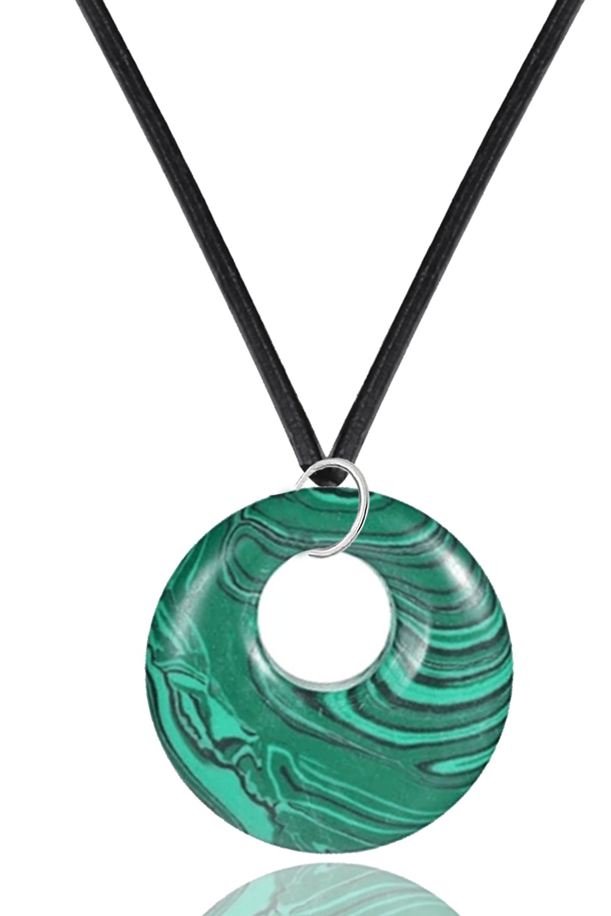 Sertifikalı Deri İpli Doğal Malahit Taşı Kolye (Malakit Taşı)