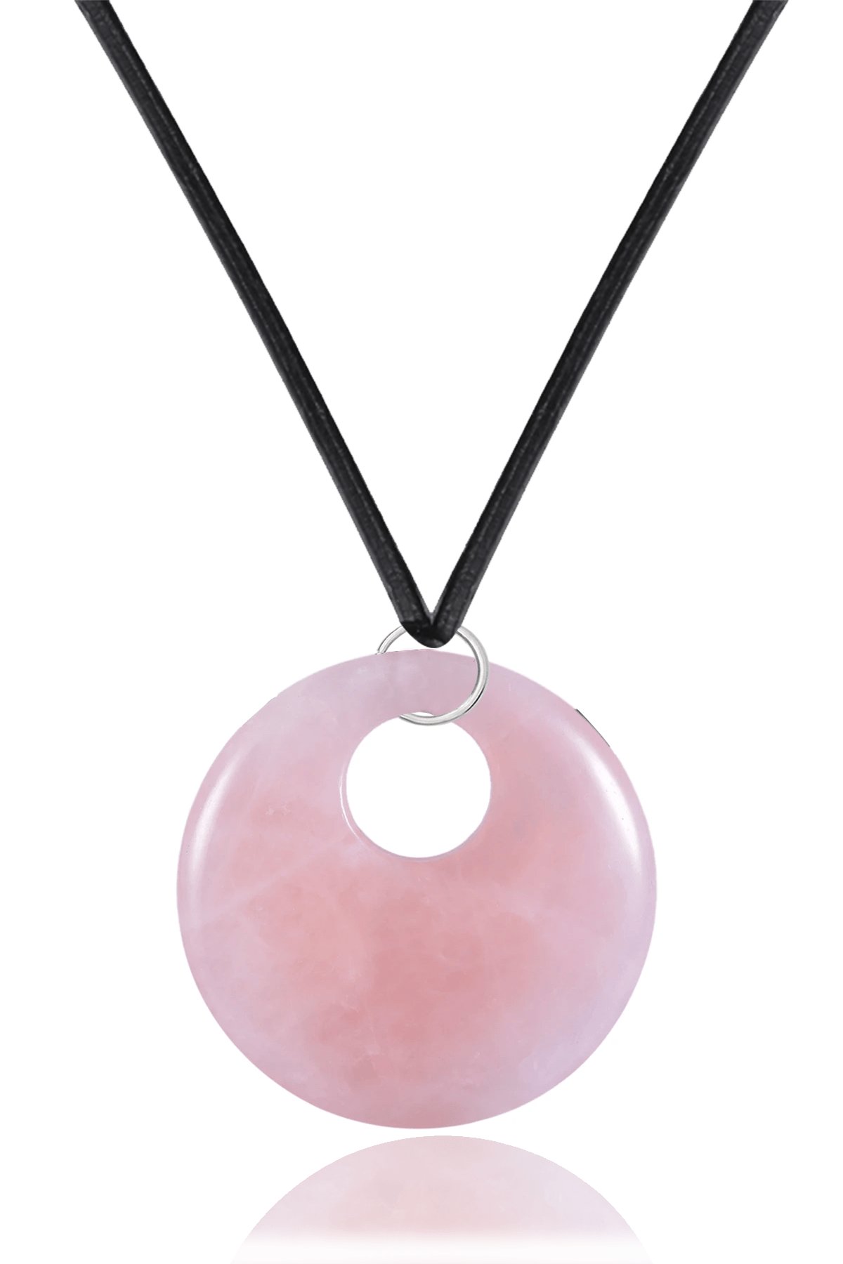 Sertifikalı Deri İpli Doğal Pembe Kuvars Taşı Kolye