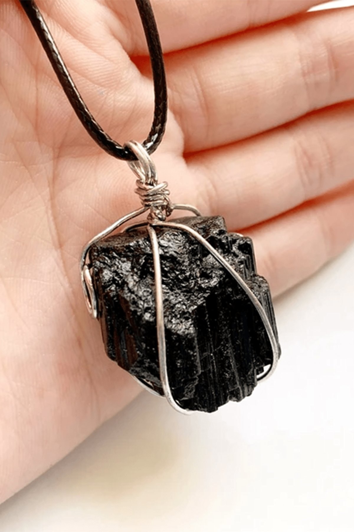 Sertifikalı Deri İpli Siyah Turmalin Taşı Kolye