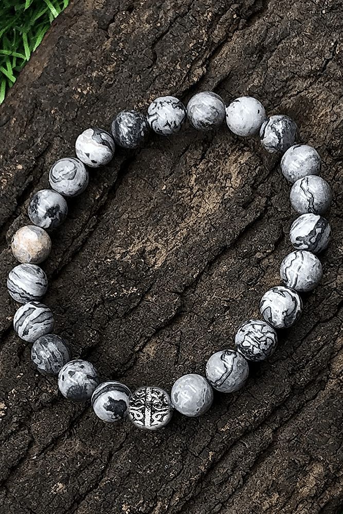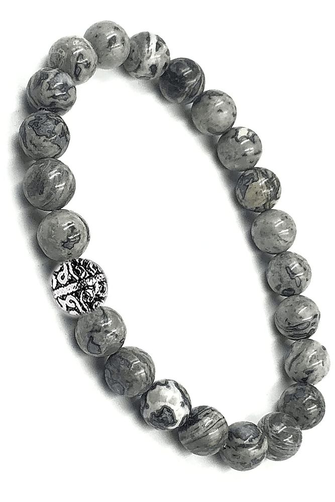 Sertifikalı Desenli Harita Jasper Taşı Bileklik (gümüş Aparatlı)