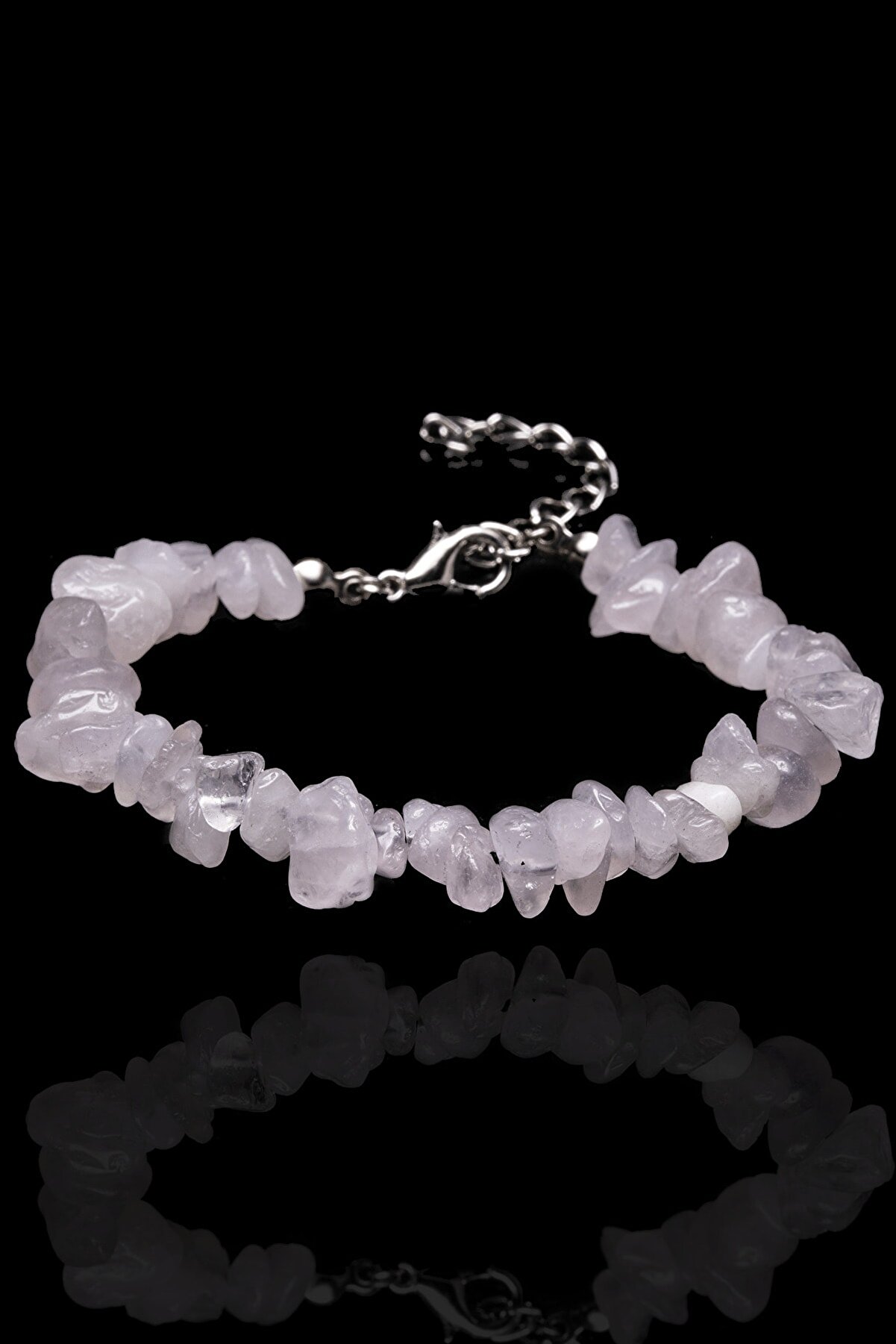 Sertifikalı Doğal Açık Pembe Kuvars Kırık Taşlı Bileklik